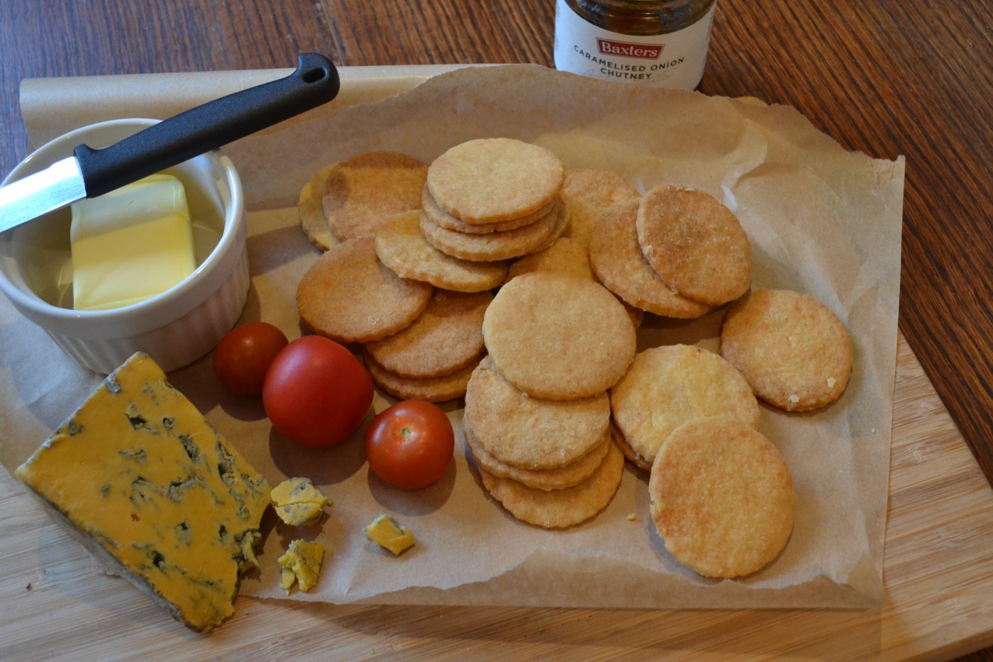 After combining everything as instructed, the rest of the recipe was basically guess-work. I rolled the dough out fairly thinly and used a cookie cutter to cut rounds, I then cooked them at 200 degrees, (which probably means about 180 in a not rubbish oven) for 15 minutes. This all seemed to work and the results were both tasty and had the correct level of crunch.