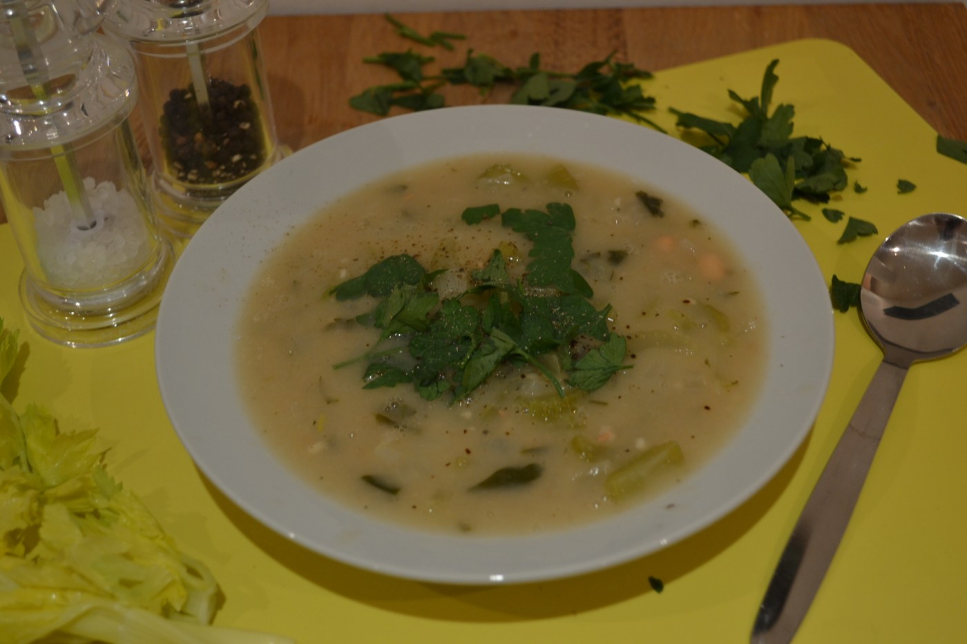 Suggested alterations: I don’t know, something that adds colour? You could definitely include other beans for variety, so maybe kidney beans? It would also be simpler to forget the ham bone and use a stock cube.