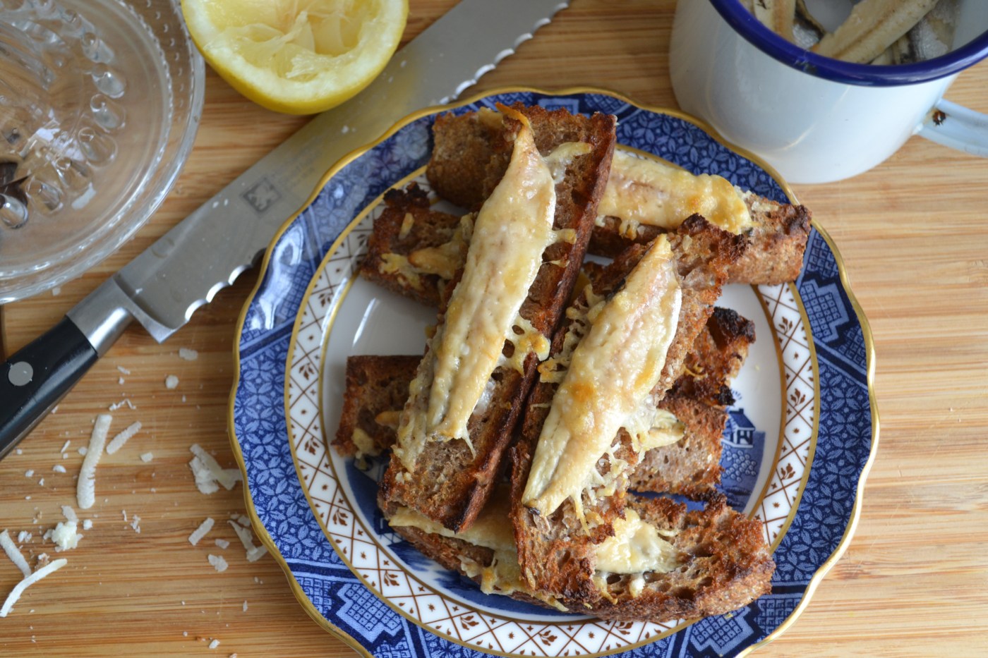 I ate these for lunch with a nice fresh salad and they were delicious – the combination of crispy bread, salty fish and melted cheese just worked perfectly.